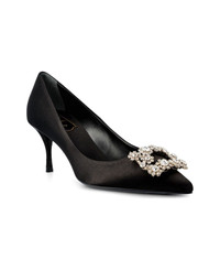 Flower Strass Buckle Pumps in Satin