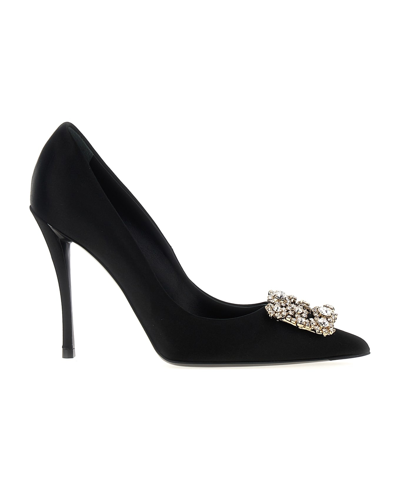 'Flower Strass' satin pumps with front jewel buckle detail, heel. Composition: 68% viscose, 32% silk Made in: Italy Color: Black Size and fit: - EU WOMAN Heel: 10 cm Model number: RVW41917620RS0B999