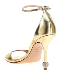 'Marlene' sandals in metallic leather, adjustable ankle strap with jewel buckle, heel with jewel detail rhinestones. Composition: 100% calfskin leather (Bos Taurus) Made in: Italy Color: Gold Size and fit: - EU WOMEN Heel: 10 cm Model number: RVW56827490KACG005
