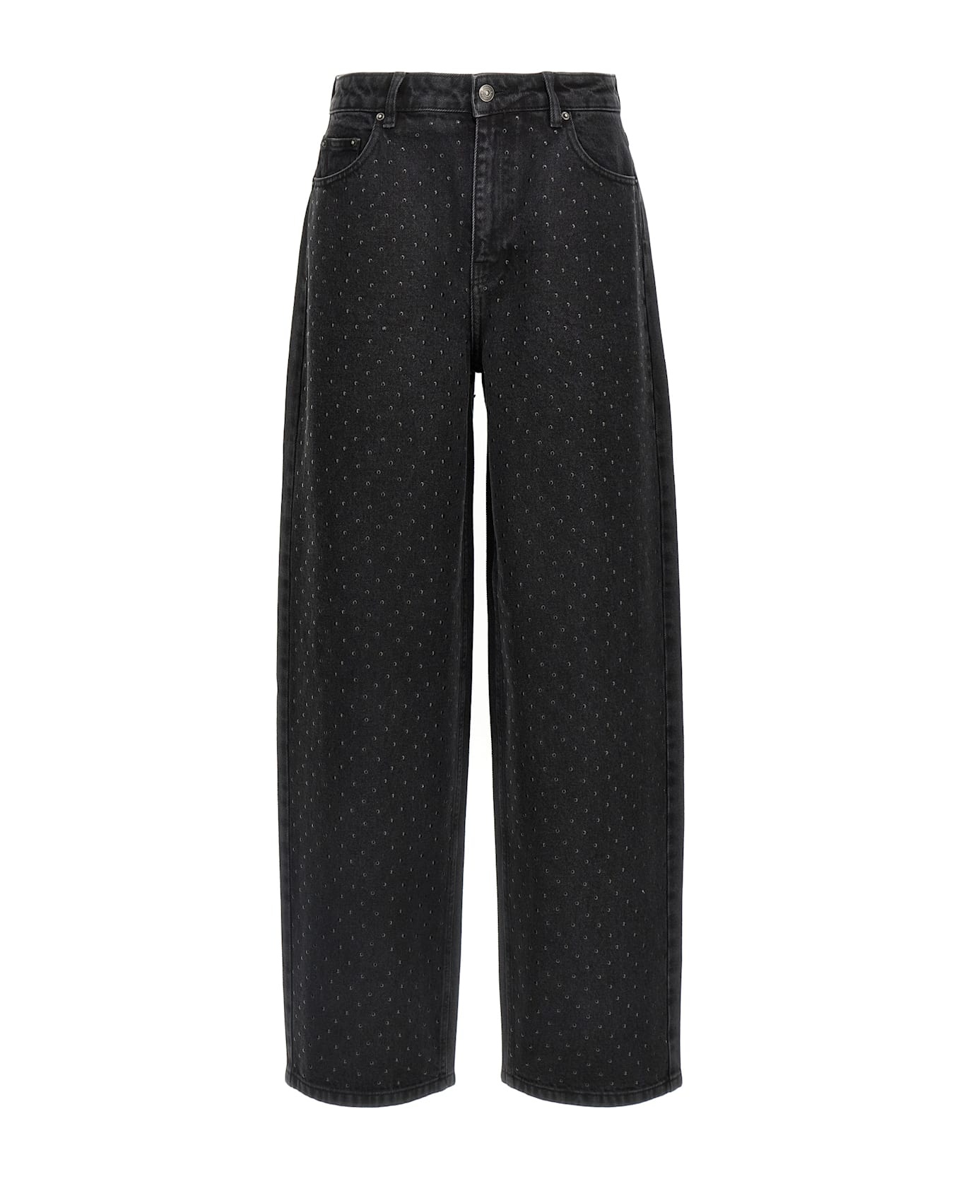 Garment-dyed cotton denim jeans with all-over tone-on-tone metal studs, zip and button closure, five pockets, straight leg, leather logo tag with metal lettering logo on the back. SUSTAINABLE: This product is made with recycled cotton. Composition: 100% recycled cotton Made in: Turkey Color: Black Size and fit: - Relaxed fit Model number: 11360629982998