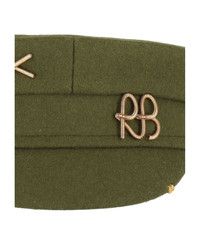 Green Baker Boy" wool blend hat with curved visor, gold metal charm detail, gold metal logo on the front. Composition: 80% Wool, 20% Polyamide Made in: Ukraine Color: Green Model number: KPC007PF25WP