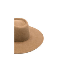 beige felt material wide brim teardrop crown logo emblem Made in: Ukraine Color: BROWN Size and fit: - brim: 10.5 centimetres, circumference: 55.0 centimetres Model number: FDR037BEIGE