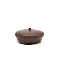 chocolate brown leather brushed finish pull-on style single loop flat crown cotton lining Made in: Ukraine Color: BROWN Size and fit: - circumference: 54.0 centimetres Model number: BRT09BROWN