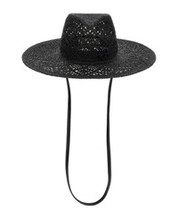 Wide-brimmed woven raffia hat, wide-brimmed fedora pattern, tone-on-tone logo applique on front, leather undercollar strap. ogo, removable undercollar chain. Composition: 100% straw Made in: Ukraine Color: Black Size and fit: - true to size fit Model number: FDR033BLACK