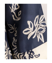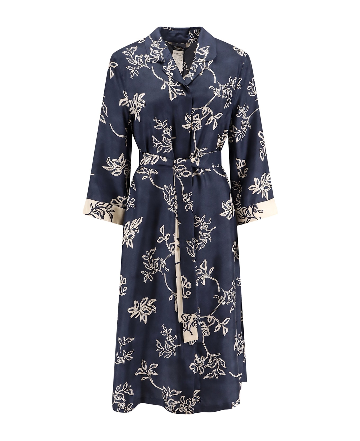 SKU: 2519221153650_001 - Closure with hidden buttons and bowling collar long sleeve with contrasting edges two removable belts at waist two lateral slit 100% silk Made in: China Color: Blue Model number: 2519221153650001
