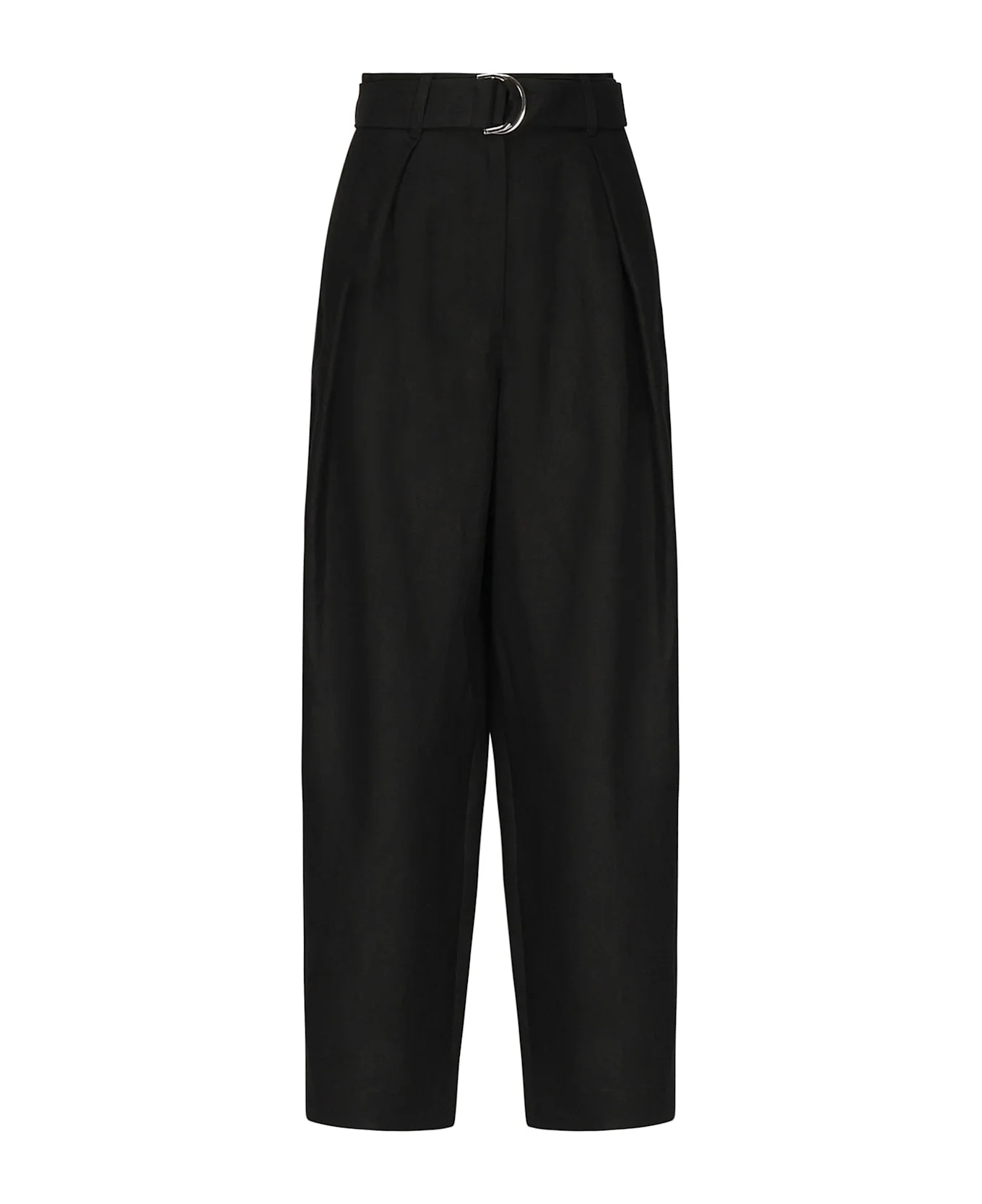 -High Waist -Pockets on the sides -Double welt pockets with button on the back -Matching belt with ring buckle -The size shown in the photo is 40 IT -Color: Black Color: Black Model number: 2519131113600004