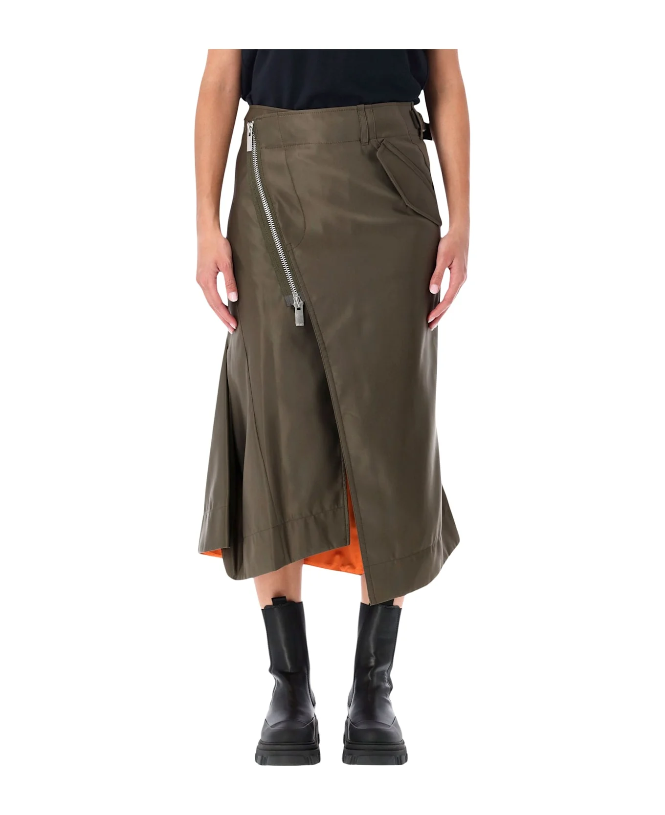Sacai Nylon Twill Midi Skirt With Diagonal Zip