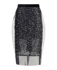 The sequin skirt by sacai embodies contemporary elegance with refined details. its shimmering fabric and sophisticated cut create a glamorous effect, while the hidden back zip and hook closure ensure a clean fit. back welt pockets with buttons and a rear slit add practicality and movement, while velvet trims complete the design with a touch of understated sophistication. Composition: 100% % Polyester, 100% % Cupro Made in: Japan Model number: 2508229001