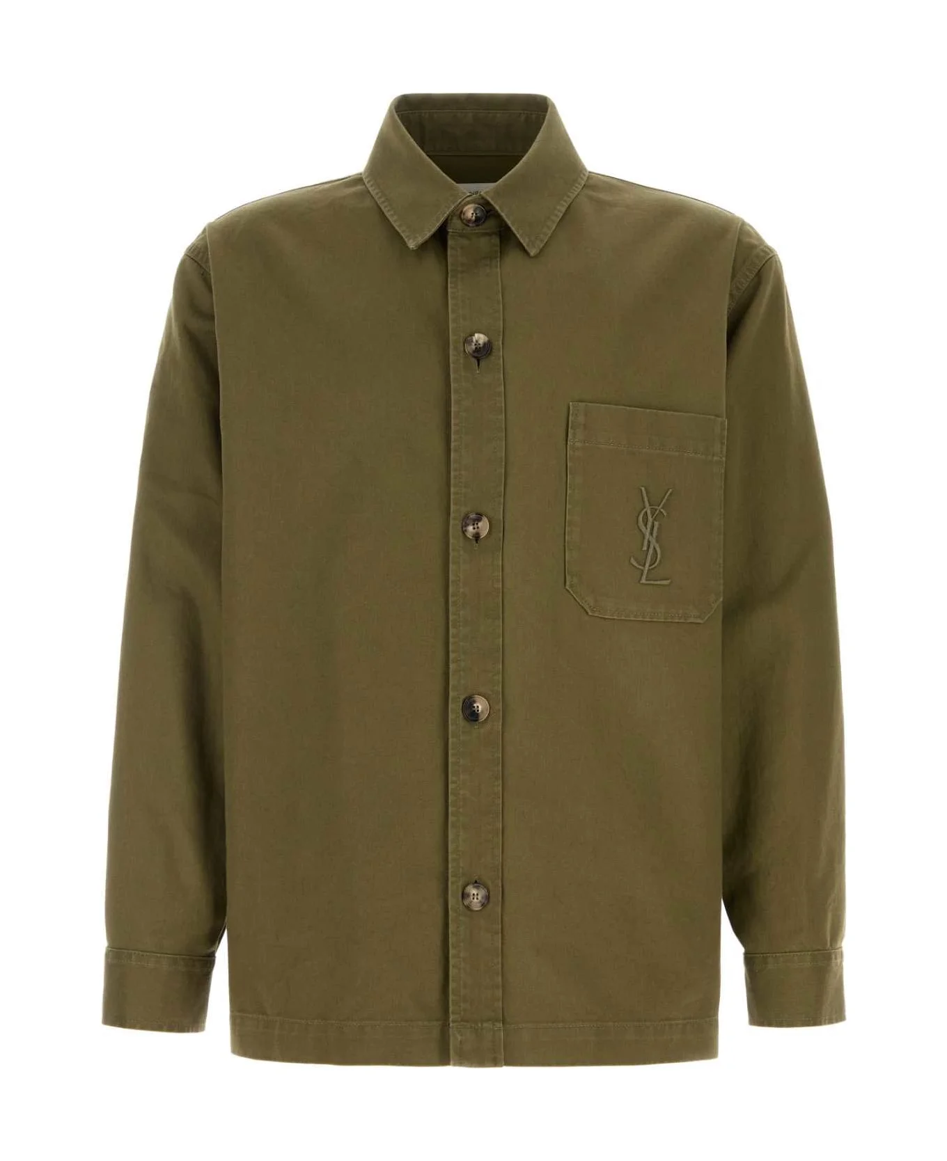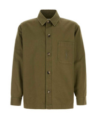 Logo-Embroidered Cotton and Linen-Blend Gabardine Overshirt Green