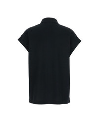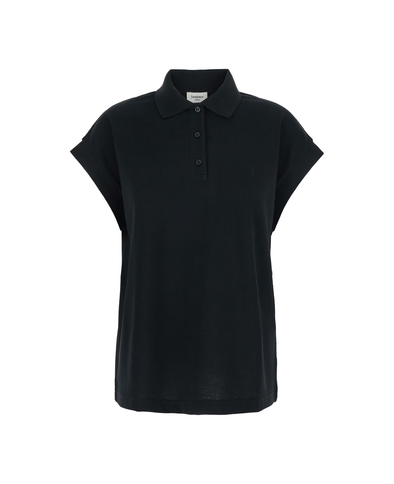 Black Sleeveless Polo Shirt With Classic Collar And Cassandre Embroidery On The Front In Cotton Woma
