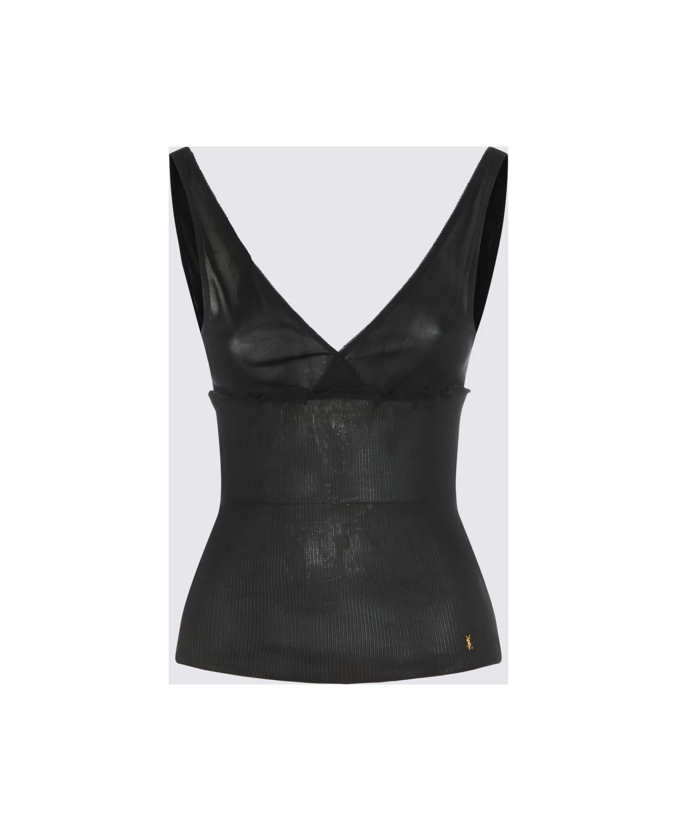 Black top from Saint Laurent featuring v neckline, sleeveless and logo patch. Composition: _, 100% Si Made in: Italy Color: Black Model number: 867257Y37SM1000