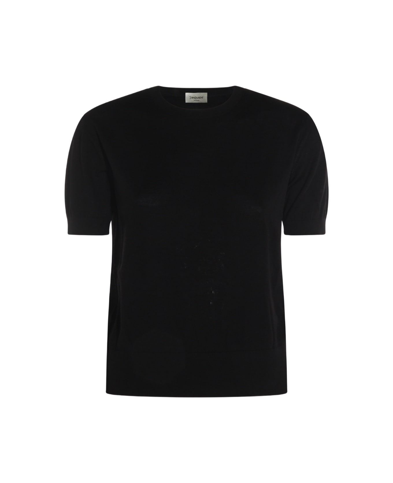 Black wool knitwear from Saint Laurent featuring round collar, short sleeves and soft vestibility. Composition: _, 100% Wool Made in: Italy Color: Black Model number: 841336Y76TC1000
