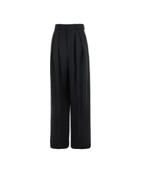 Pleated wool wide-leg pants Black