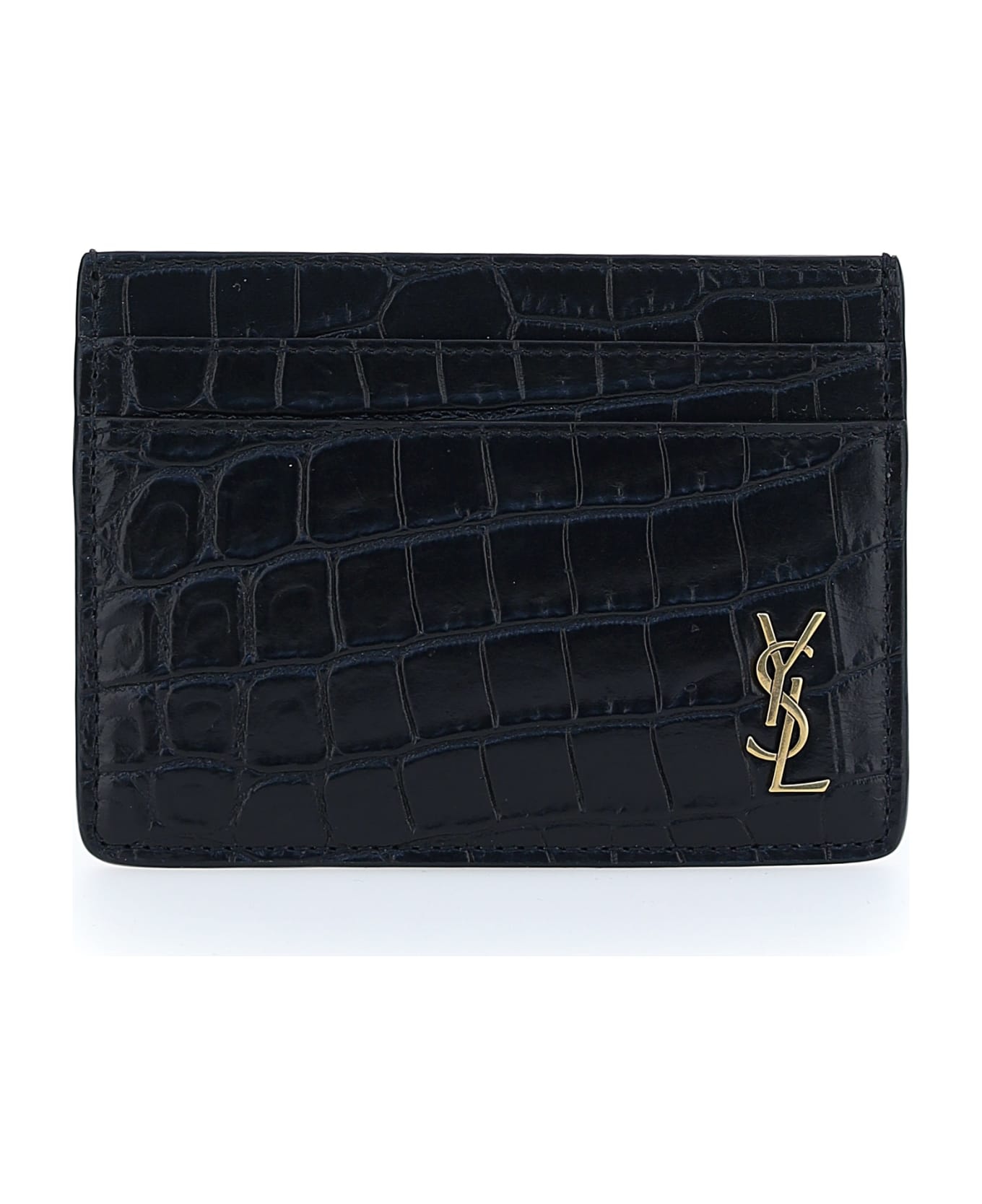 TINY CASSANDRE CARD CASE IN CROCODILE-EMBOSSED MATTE LEATHER