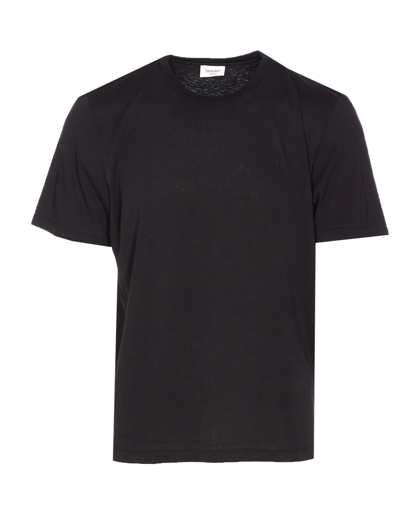 Saint Laurent black t-shirt, crewneck, embroidered tone on tone logo on the front Composition: 100% Cotton Made in: France Color: Noir Model number: 819395Y2ZJ2