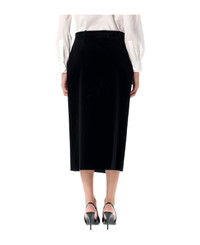 Wrap-effect cotton-velvet midi skirt Black