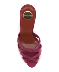 The crepe satin chandelle mules sandals by saint laurent are a masterpiece of elegance and sophistication. featuring a crisscross almond toe and a covered stiletto heel, these sandals embody contemporary luxury. made of certified viscose and silk, they offer a soft and precious feel. the leather sole ensures their durability and comfort, while the round metal plaque engraved with the saint laurent logo on the insole adds a touch of exclusivity. Composition: 100% % Silk, 100% % Leather Made in: Italy Size and fit: - 9.5 cm Model number: 8444179QN006151