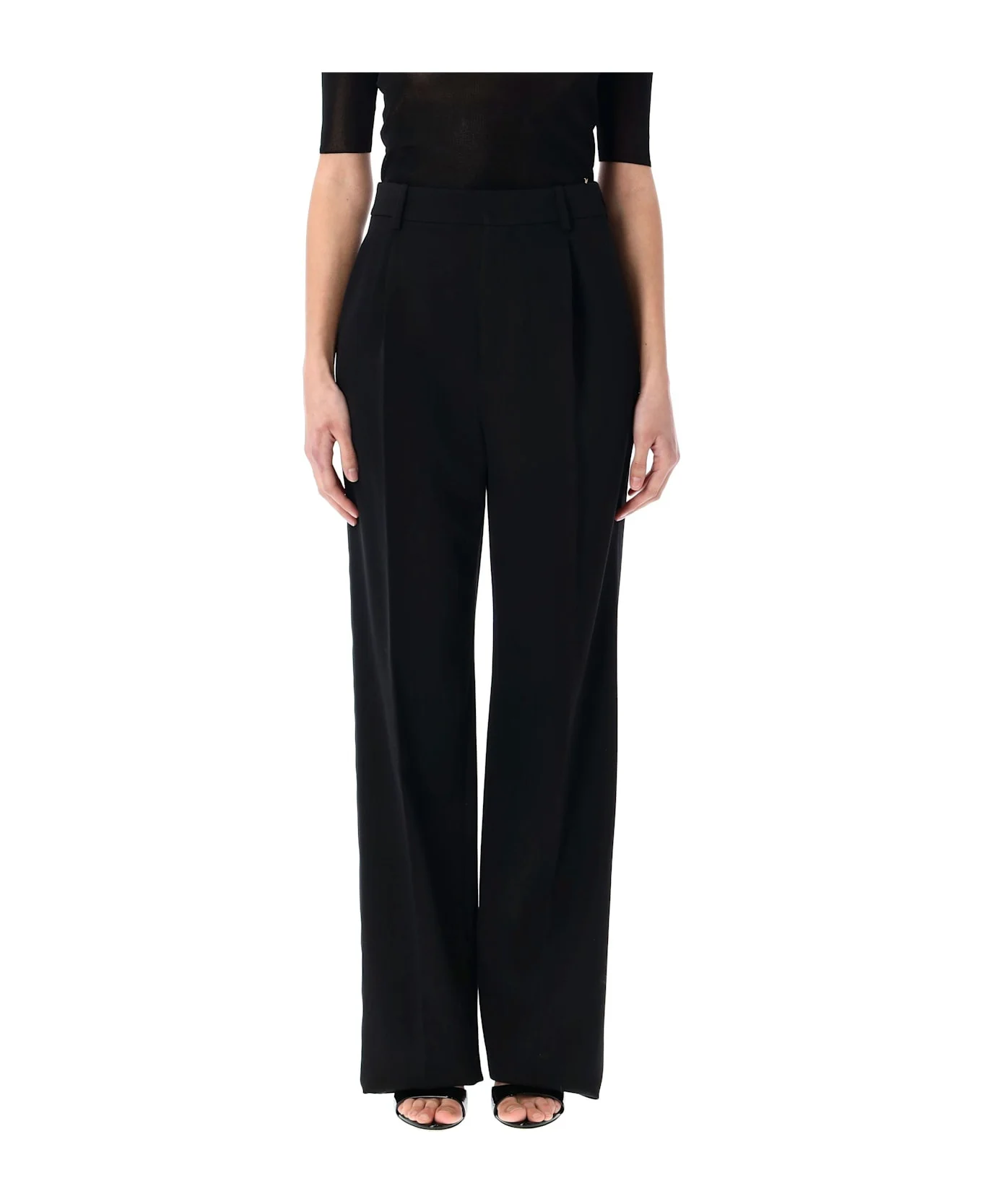 Pleated grain de poudre wool straight-leg pants Black