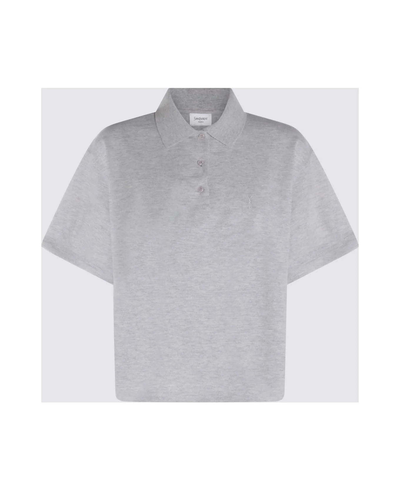 Grey cotton polo shirt from Saint Laurent featuring short sleeves, polo shirt collar, buttons fastening, frontal embroidered logo and regular vestibility. Composition: _, 50% Cotton, 50% Polyester Made in: Italy Color: GRIS Model number: 841963Y37HC1403