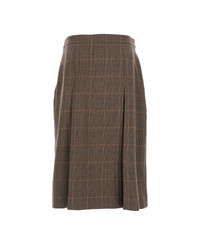 Grey Midi Skirt With Side Concealed Zip Closure And All-over Check Motif In Wool And Cashmere Woman