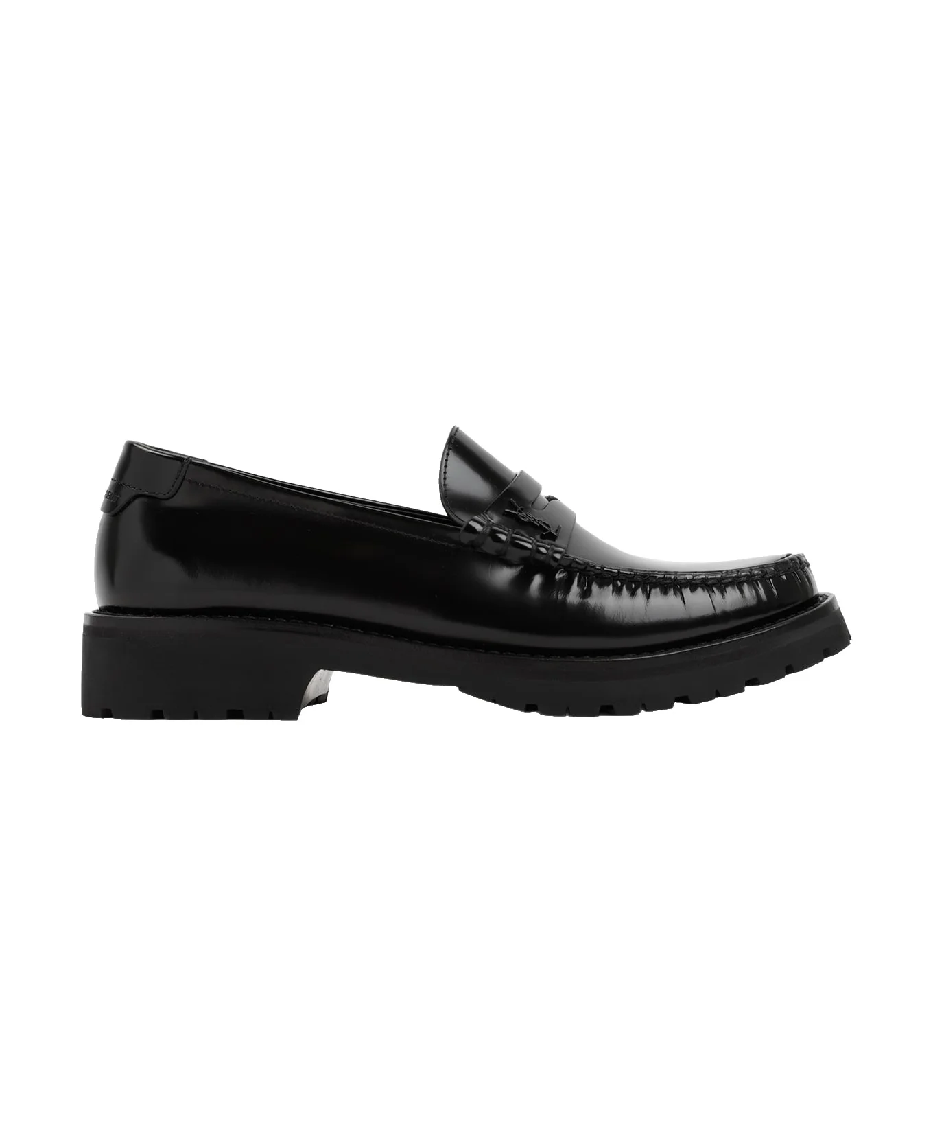 Saint Laurent Black Leather Loafers. Upper crafted in pure black brushed leather. Square-round toe, tonal overstitching, penny bar with YSL emblem embellishment, slip-on style, Saint Laurent logo embossed on the calf, leather lining, rubber outsole. Made in: Italy Color: Nero Size and fit: - Heel Height: 3cm Model number: 716556AO9VV1000