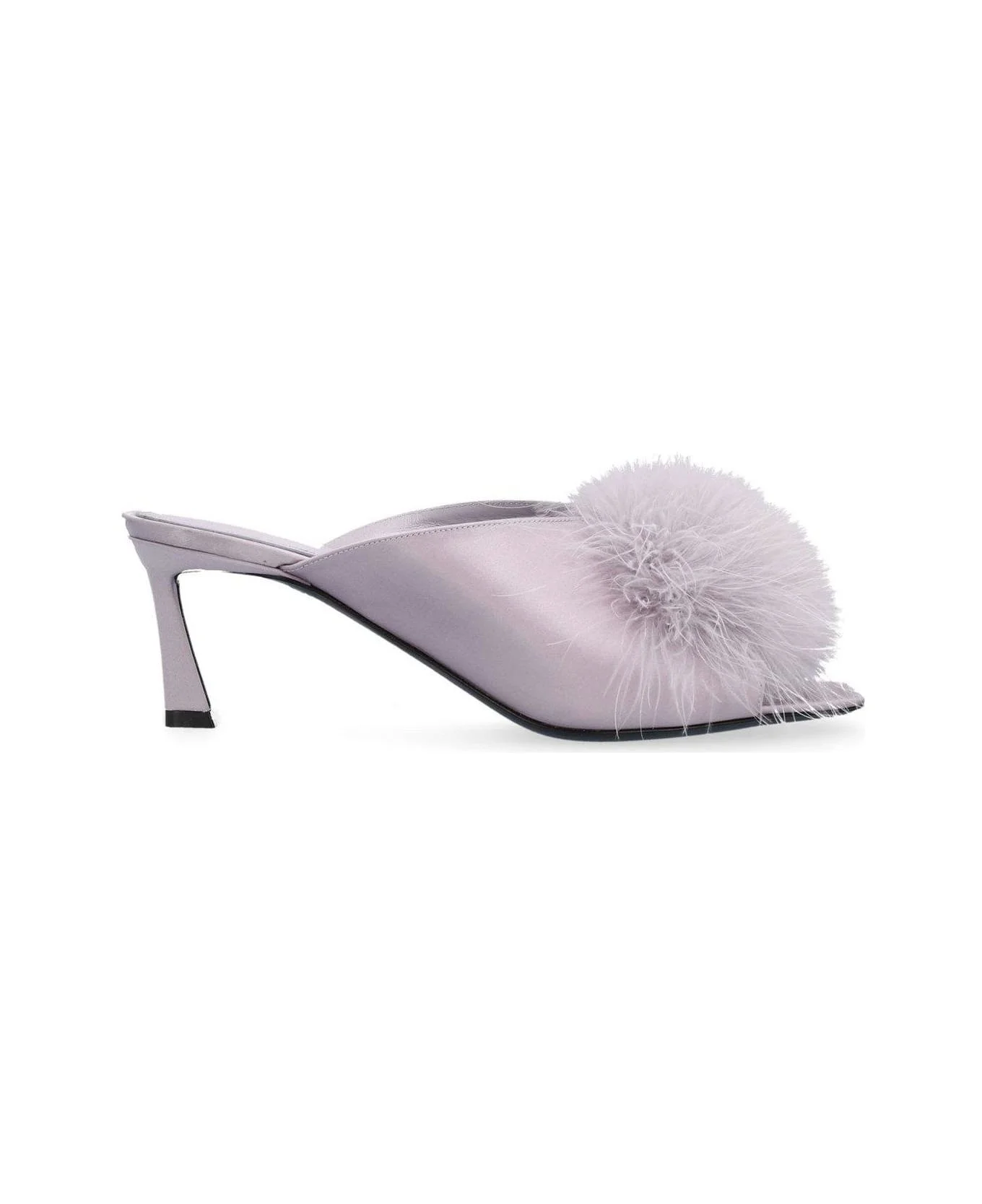 mae mules in crepe satin with feathers