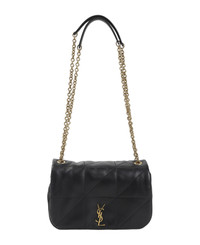 Saint Laurent Mini Jamie Black Lamb Leather Shoulder Bag. Crafted from black leather adorned with carre rive gauche stitching, featuring aged gold-toned hardware, a front Cassandre logo detail, concealed magnetic fastening, a sliding chain and leather shoulder strap, and an inner open pocket. Made in: Italy Color: Nero Size and fit: - W:20cm H:12cm D:7cm Model number: 766754AAB321000