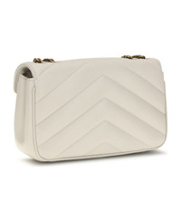 The loulou shoulder bag by saint laurent is an icon of timeless elegance. crafted with the unmistakable quilted design, it features a front closure with magnetic flap embellished with the brass logo applied on the front. the sliding leather and chain shoulder strap allows it to be worn on the shoulder or crossbody for a sophisticated and versatile style. Composition: 100% % Calf Leather Bos Taurus Made in: Italy Color: Crema Soft Size and fit: - W 24 x H 14 x D 6 cm Model number: 801437AAEAX