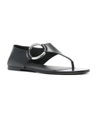 - Composition: 100% calf leather - Inner: Leather - Insole: Leather - Sole: Leather - Round toe - Branded insole - Slip-on design - Smooth grain leather - Thong strap - Silver-tone ring hardware detailing Made in: Italy Color: Black Model number: 776411AAC6O1000