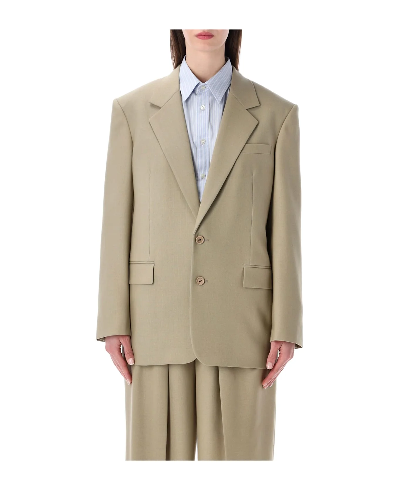 Refined Elegance Meets Modern Tailoring With The Saint Laurent Single-breasted Jacket In Wool And Silk. Featuring A Notched Collar, Two-button Closure, And Padded Shoulders, This Jacket Offers A Structured Yet Sleek Silhouette. Functional Jetted Pockets With Flaps, A Chest Welt Pocket, And Inner Pockets Complete The Design, While A Silk Lining Ensures Luxurious Comfort. Made From Wool And Silk Blend With Silk Lining Single-breasted, Two-button Closure Notched Collar With Padded Shoulders Two Jetted Front Pockets With Flap And One Welt Chest Pocket Two Inner Jetted Pockets Four-button Cuffs Single Back Vent Alessandra Is 1,75 M And Wears Size 36 Composition: 92% wool, 8% silk Made in: Italy Color: BEIGE Model number: 858458Y7K112495