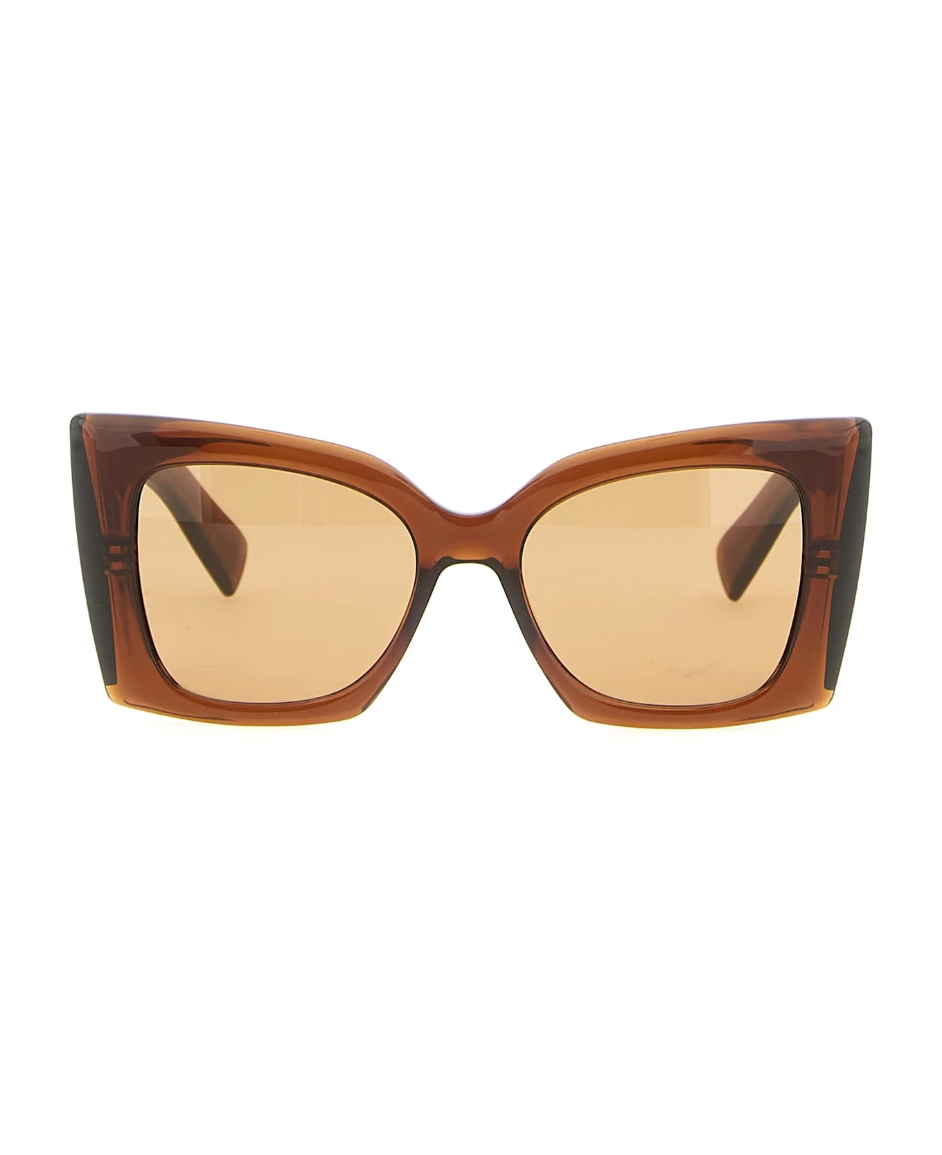 'SL M119 Blaze Crystal' sunglasses with oversized injection frame, nylon lenses, wide temples decorated with antiqued metallic 'Cassandre' logo, cat-eye model. Composition: 100% acetate Made in: Italy Color: Brown Size and fit: - Lens: 54 mm Bridge: 18 mm Rod: 135 mm Model number: 862888Y99582506