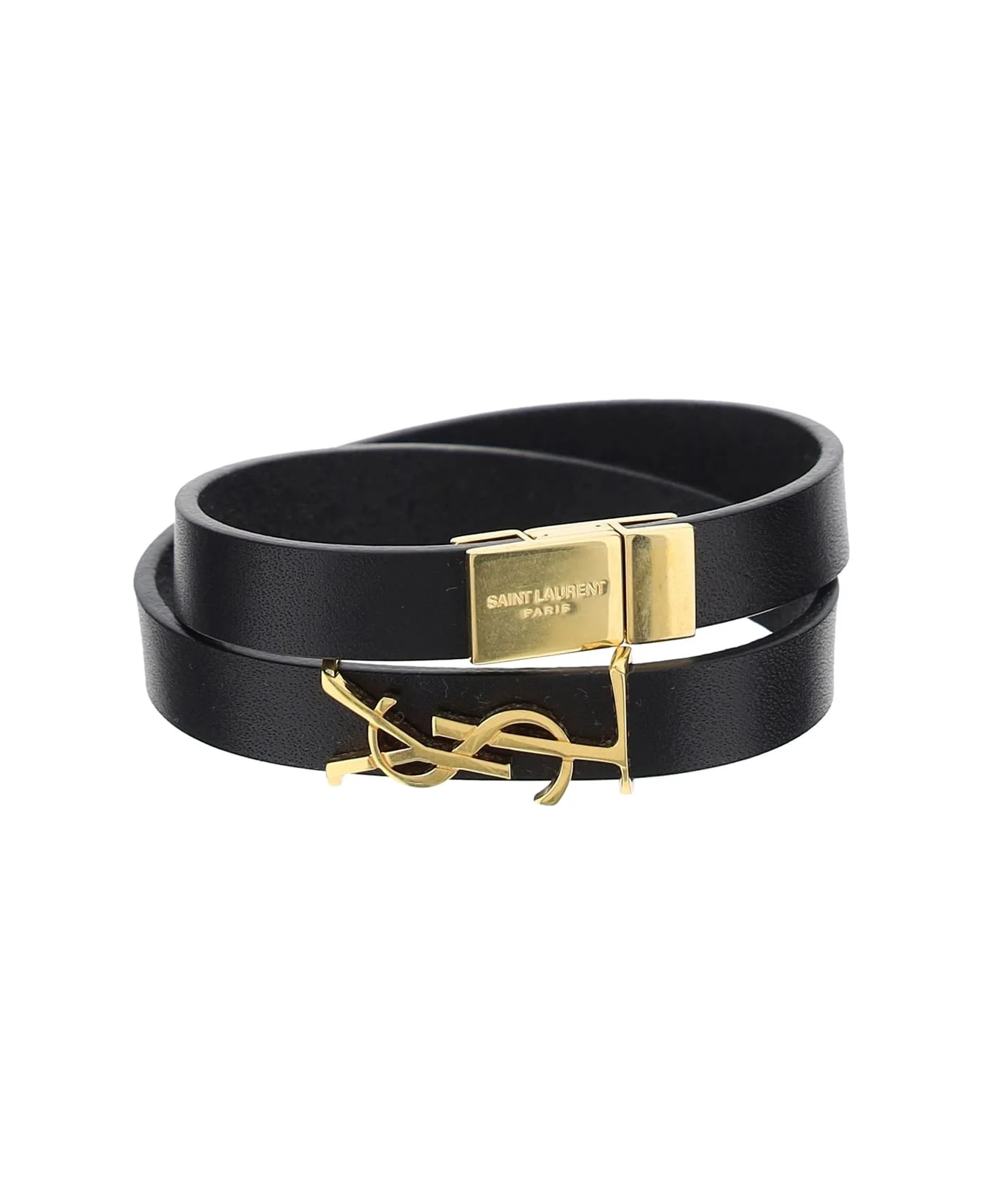 CASSANDRE DOUBLE WRAP BRACELET IN LEATHER AND METAL