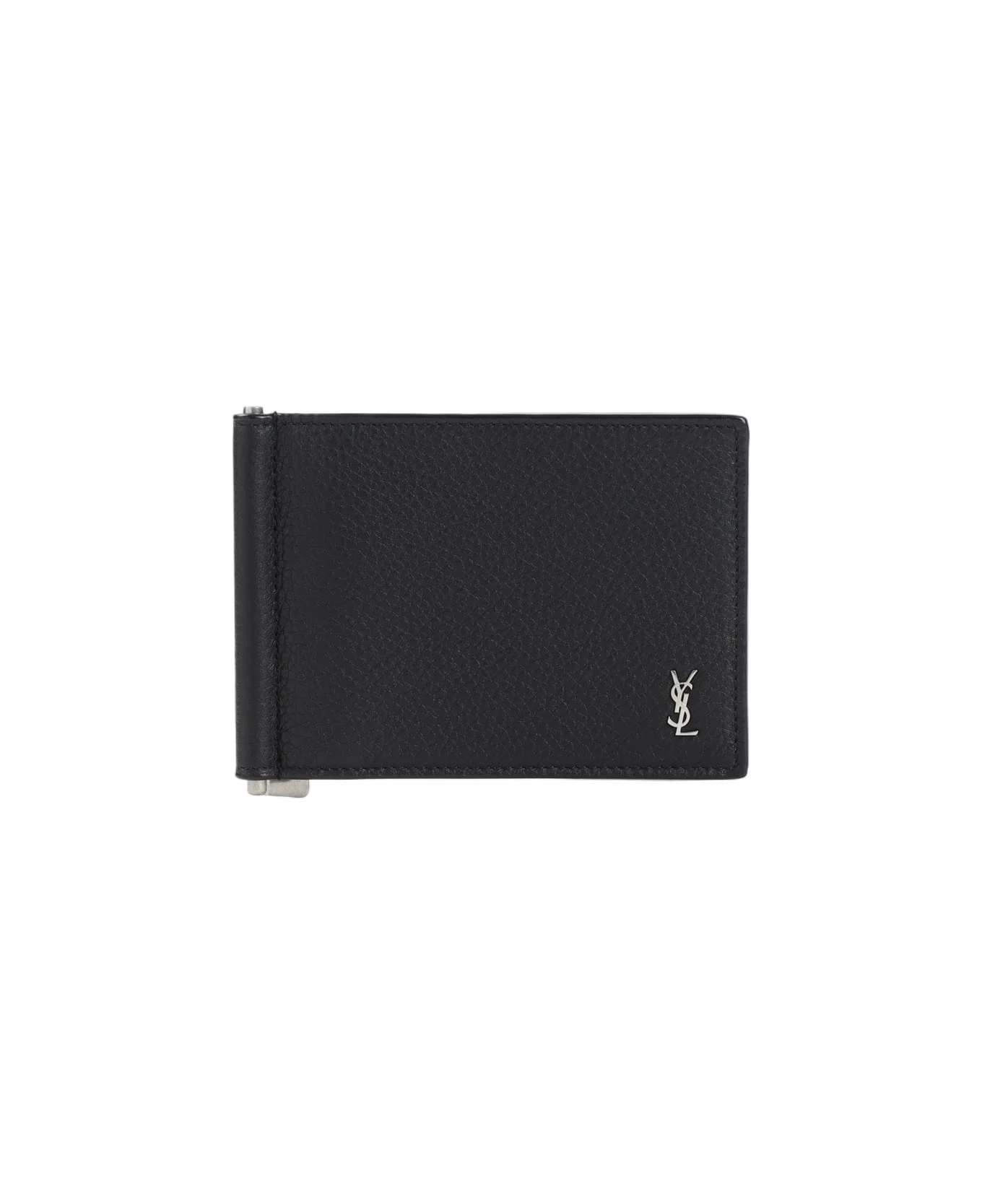 Saint Laurent Tiny Cassandre Black Calf Leather Wallet. Crafted from black calf leather, featuring silver-toned hardware, a mini Cassandre logo detail, an inner bill clip and six card slots. Made in: Italy Color: Black Size and fit: - W:11,5cm H:8,5cm D:0,5cm Model number: 863631AAELP1000