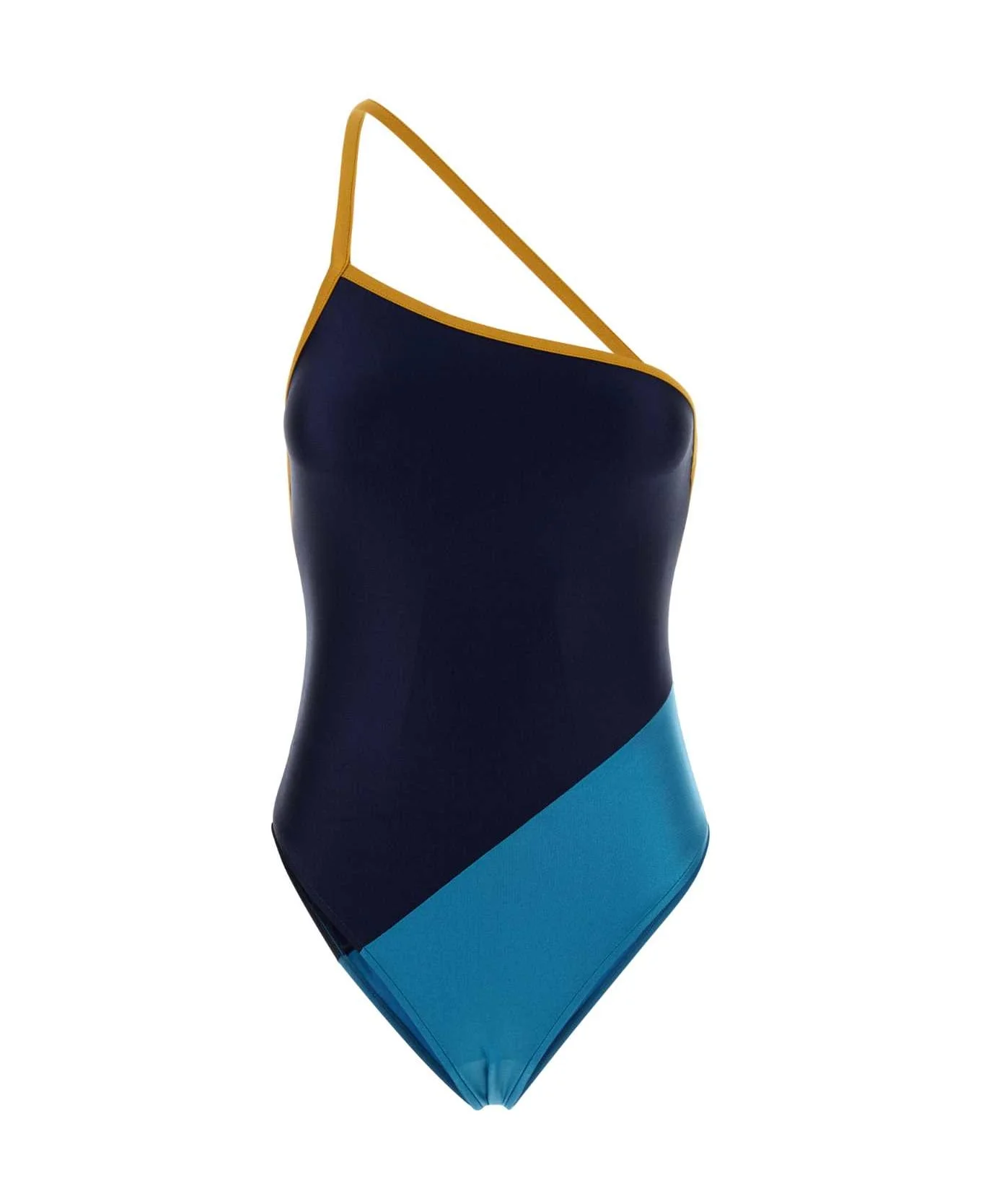Two-tone Stretch Nylon Swimsuit from Saint Laurent Made in: Italy Color: BLEUBONDIBLEUMARIN Model number: 854778Y37WN4752