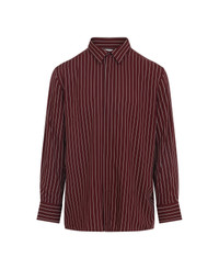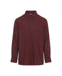 Saint Laurent Bordeaux Viscose Shirt. Crafted from pinstriped bordeaux viscose, pointed collar, front concealed button fastening, long sleeves, buttoned cuffs, back yoke, straight hem, relaxed fit. Made in: Italy Color: Bordeaux Craie Model number: 819096Y1L046403