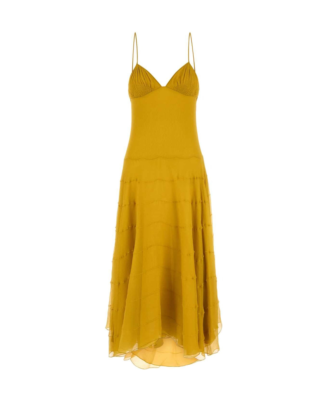 Yellow Crepe Dress from Saint Laurent Made in: France Color: JAUNE MOUTARDE Model number: 837256Y3F227789