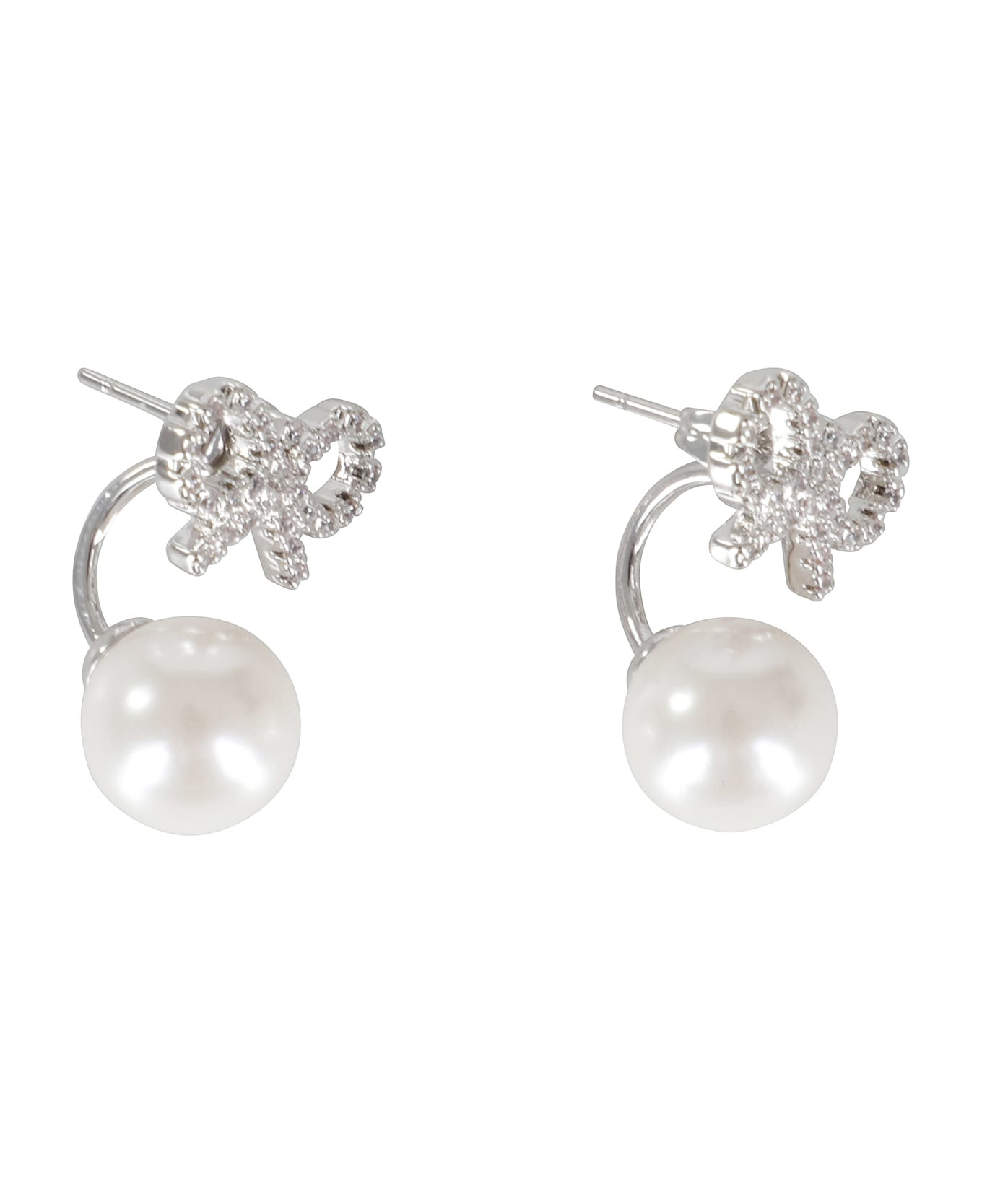 Bow Pearl earrings - Self-Portrait - silver color - silver plated brass - tassels with cubic zirconia - faux pearls - Length: 1. 5 cm Height: 2. 4 cm Made in: China Color: Silver Model number: PF25624ESL|097SILVER