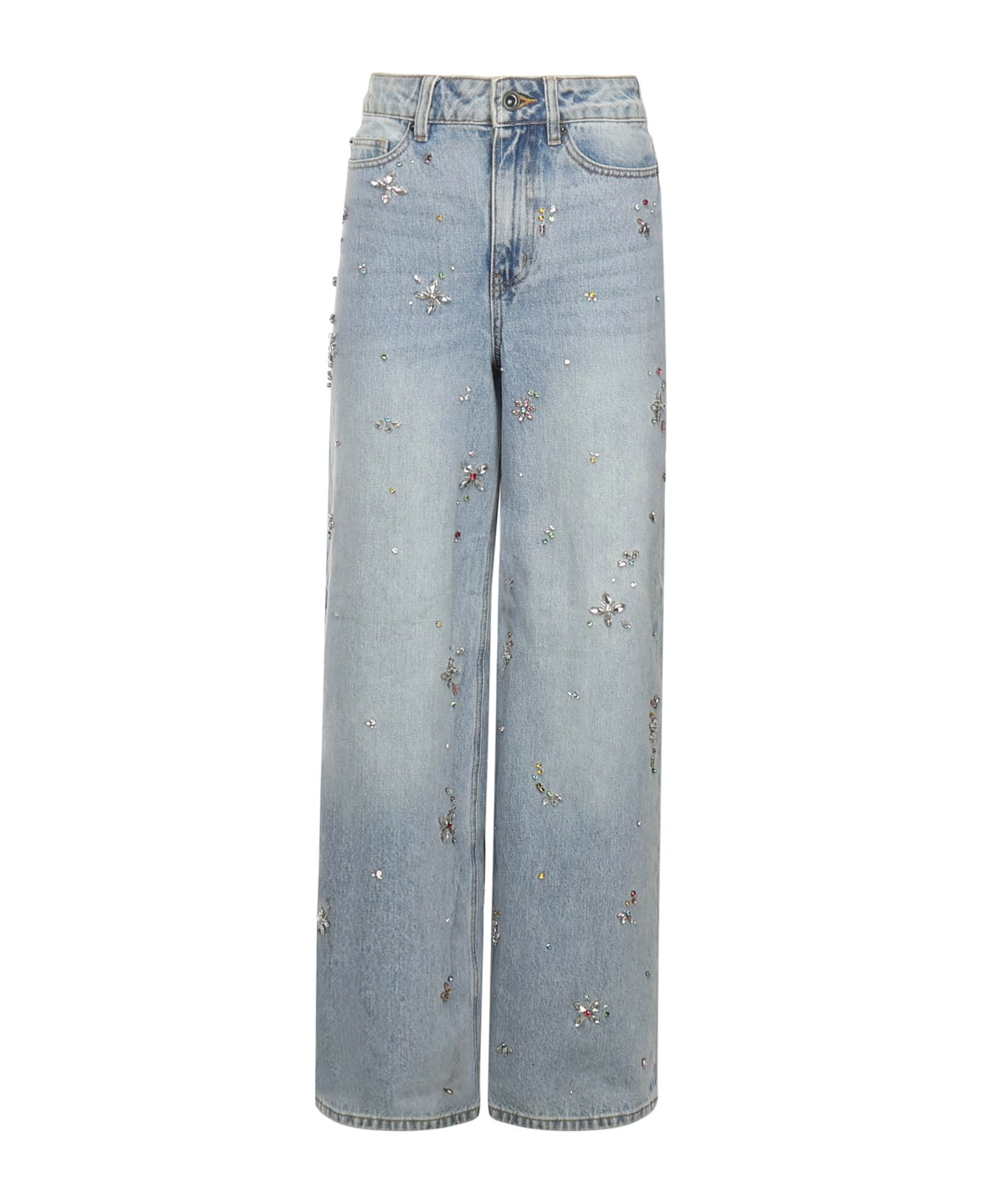 Light Blue Embellished Wide Leg Jeans