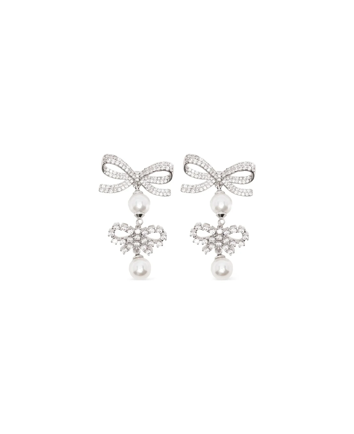 silver-tone double bow pearl detail drop design post-back fastening Made in: China Color: SILVER/WHITE Model number: RS26629ESLSILVE