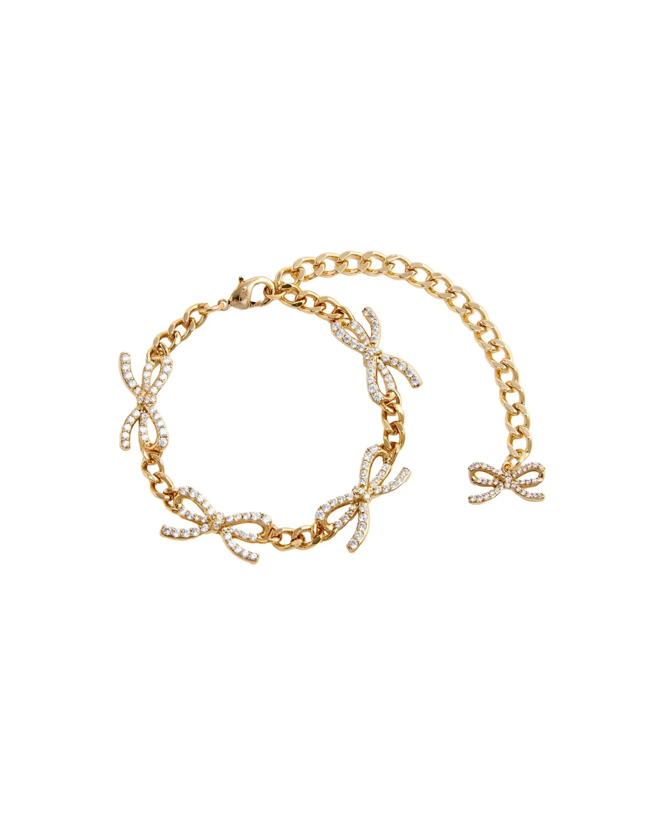 Metallic Bracelet With Bow Nad Crystal Embellishments In Copper Woman