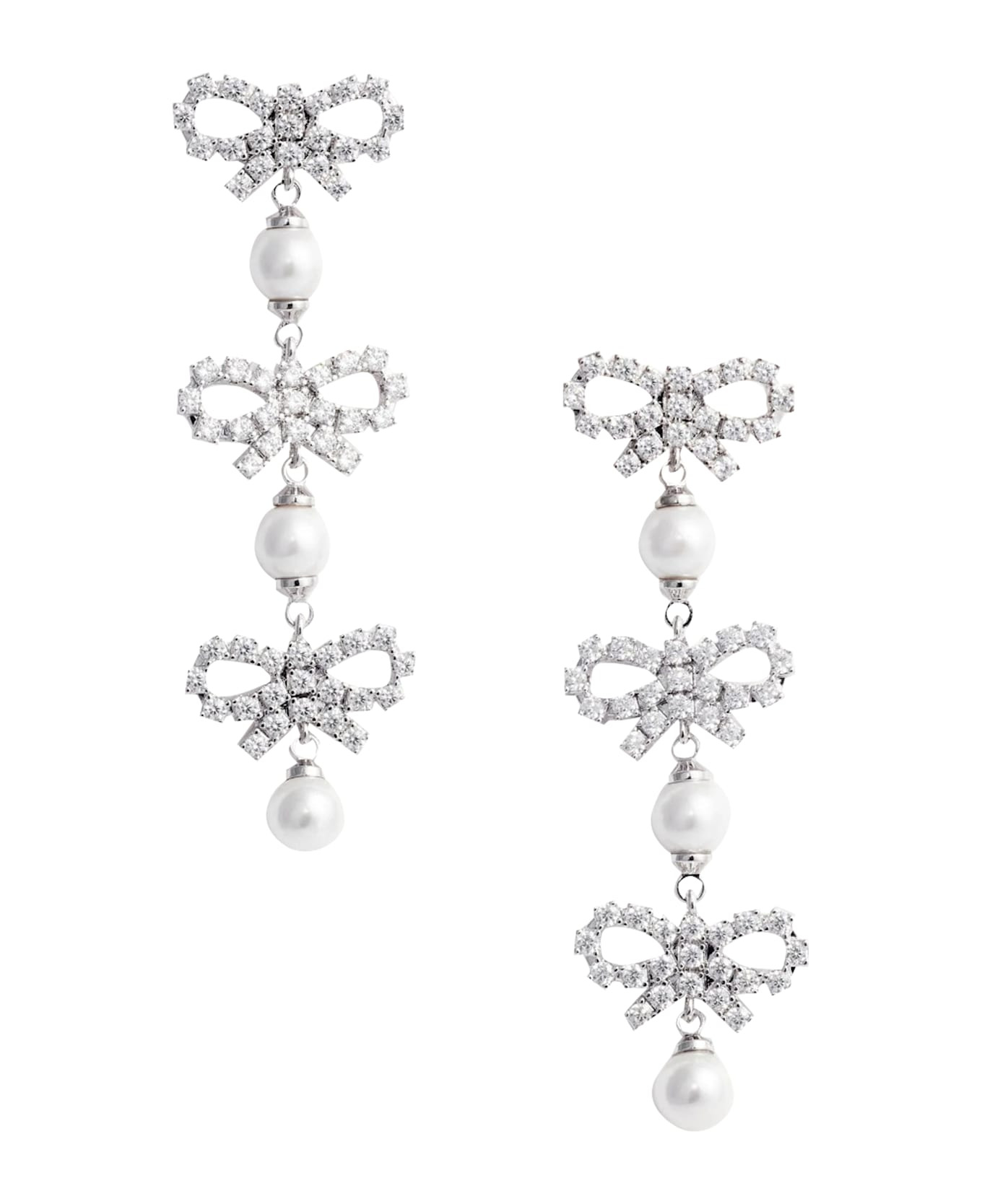 Self Portrait silver micro bow pearl tiered earrings, hook closure Composition: 100% Brass+abs Pearl+steel+zirconia Made in: China Color: Silver Size and fit: - UNI SIZE Model number: 613EPEARL