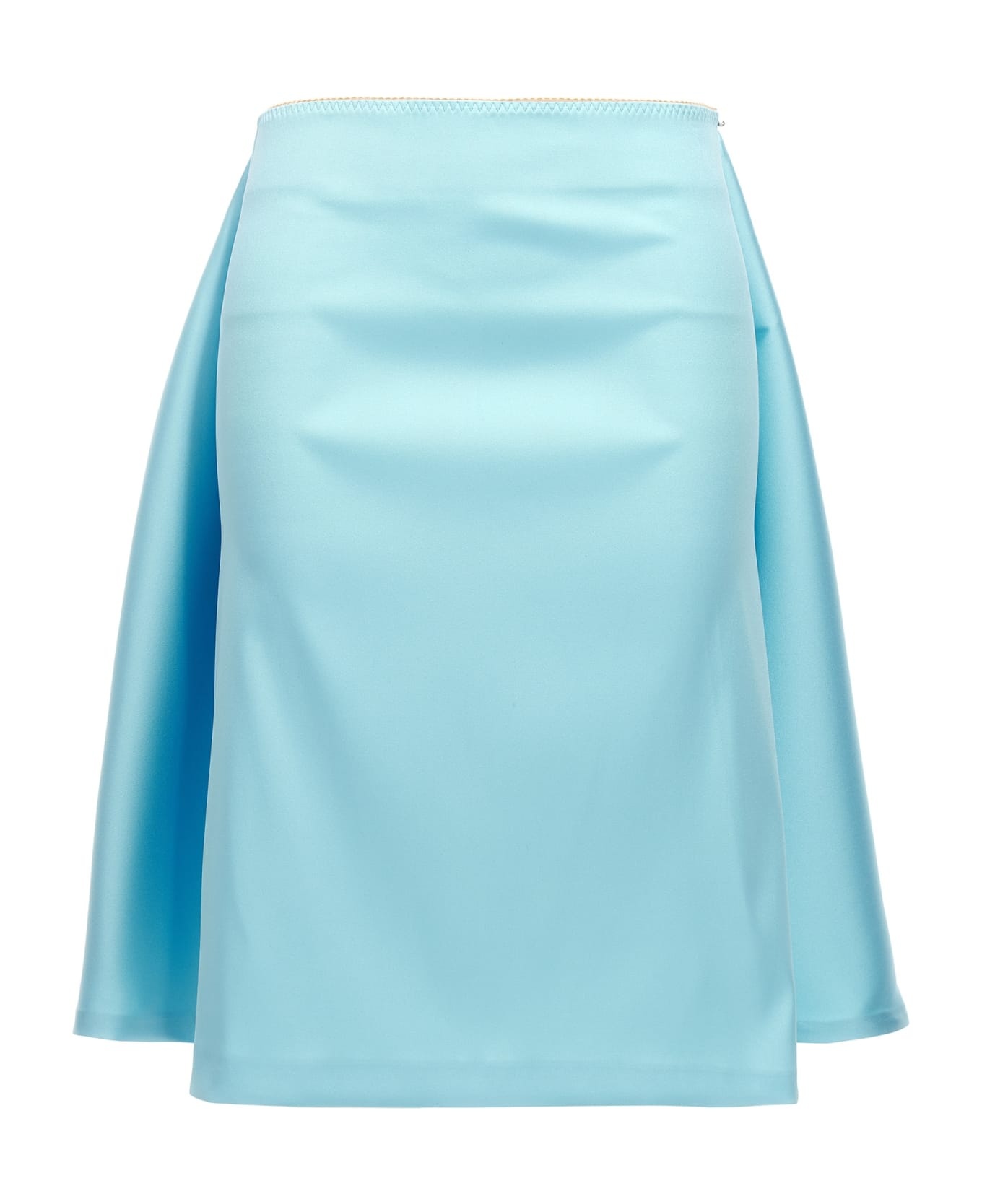 Beira' stretch fabric short skirt in front of a sheath, back with pleated pattern, low waist, elastic sight tape. Composition: 85% polyester 13% polyamide 2% elastane Made in: Italy Color: Light Blue Size and fit: - True to size fit Model number: BEIRA001