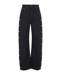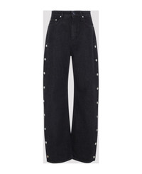 Sportmax Galante Snap Black Cotton Jeans. Crafted from slightly washed black cotton denim, low waist and crotch, 5-pocket construction, front button and fly zip fastening, belt loops, snap button fastening along the legs, wide leg. Made in: Italy Color: Black Model number: 2522186012600001