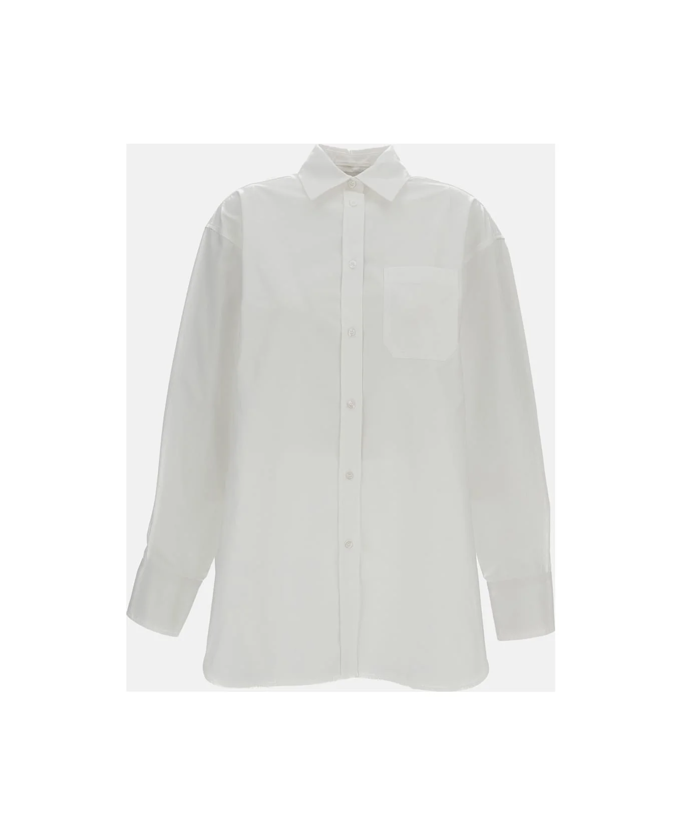 Long cotton-blend shirt Comfortable fit Point collar Full front button closure Chest patch pocket Buttoned cuffs Wide side slits Pleated back panel Chain with removable silver-tone snake link Color: white Composition: 77% Cotton, 23% Polyester Made in: Portugal Color: White Model number: 2612191031600001