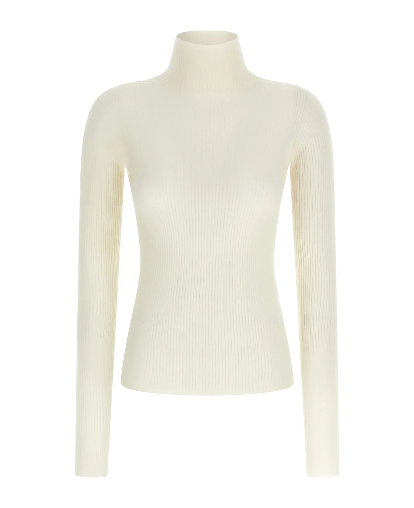 'Niagara' turtleneck sweater in pure virgin wool ribbed yarn, seamless knit, high neck, long cuffed sleeves. Composition: 100% virgin wool Made in: Italy Color: White Size and fit: - true to size fit Model number: 2522366012600001