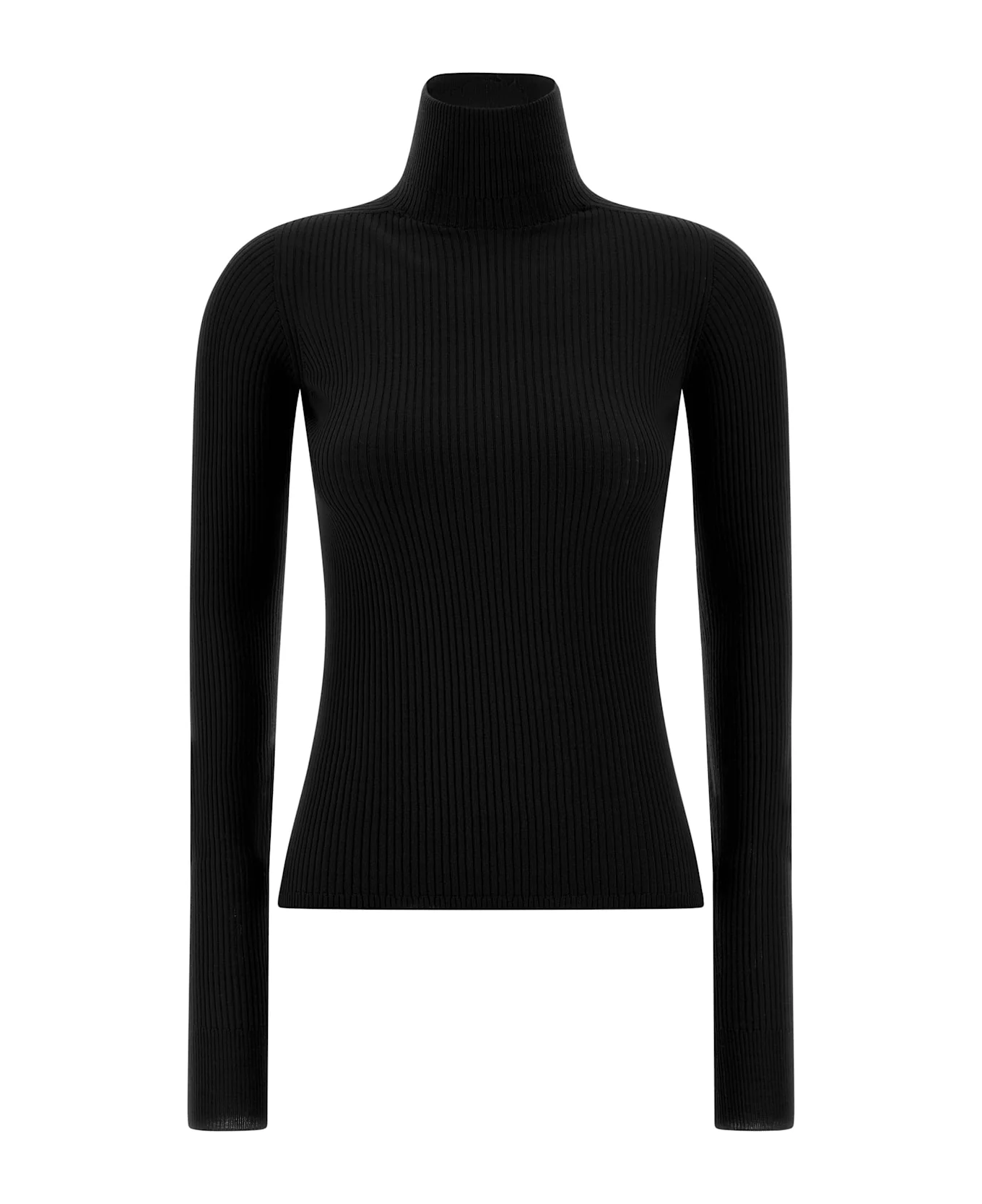 'Niagara' turtleneck sweater in pure virgin wool ribbed yarn, seamless knit, high neck, long cuffed sleeves. Composition: 100% virgin wool Made in: Italy Color: Black Size and fit: - true to size fit Model number: 2522366012600006