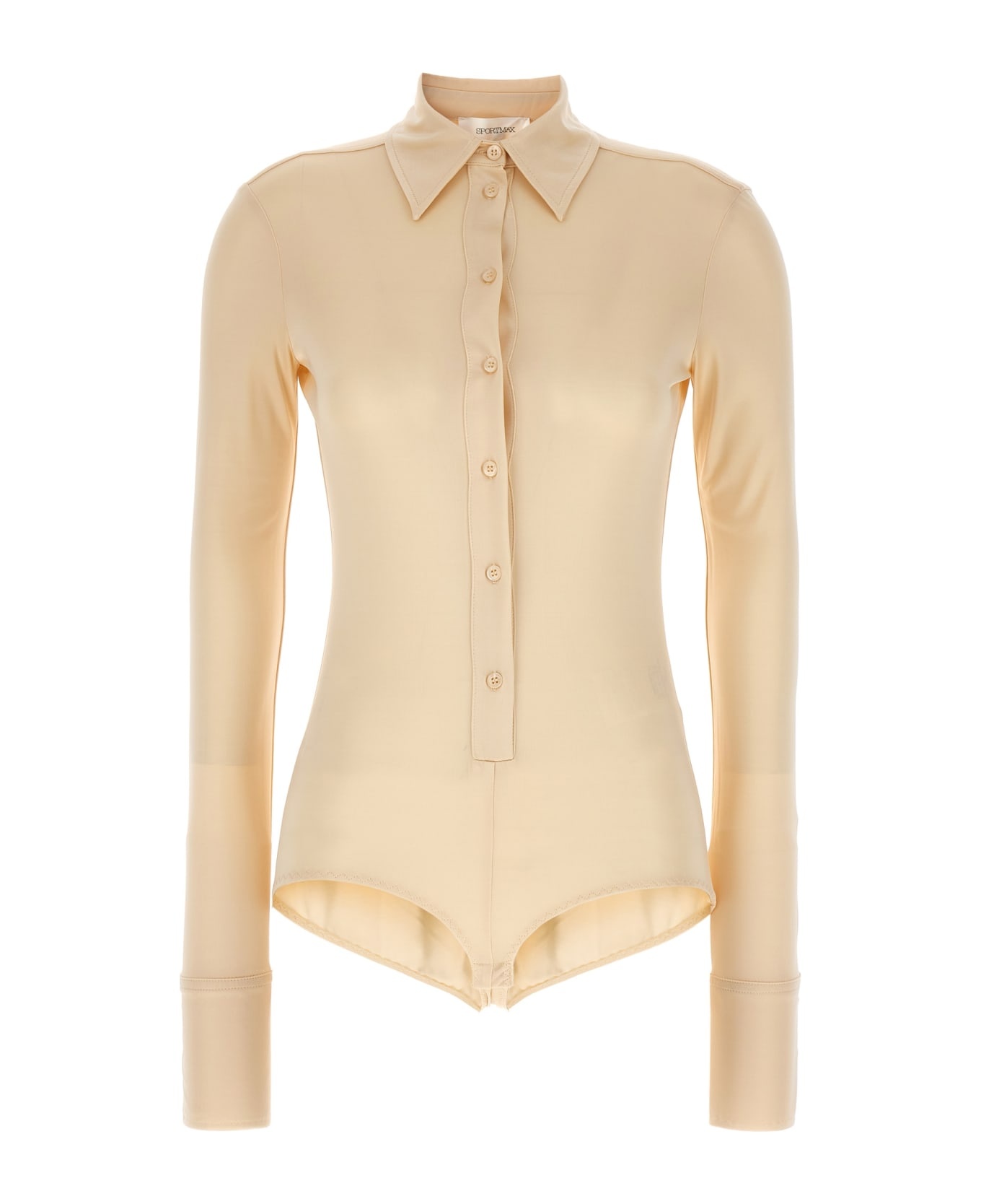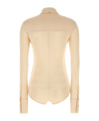'Pera' viscose shirt-style bodysuit with button fastening, collar and long sleeves. Composition: 100% viscose Made in: Romania Color: Beige Size and fit: - true to size fit Model number: PERA001