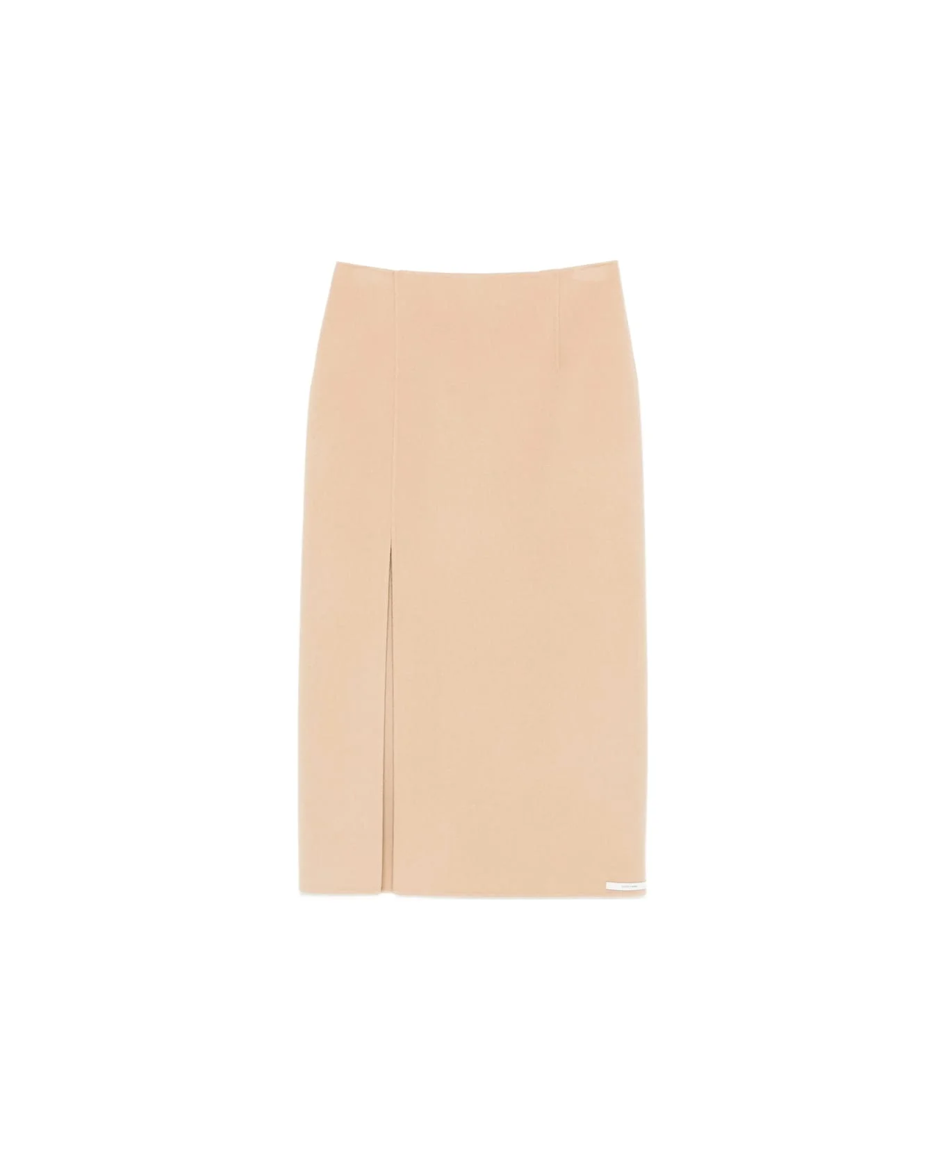 Long double-faced wool skirt - caramel