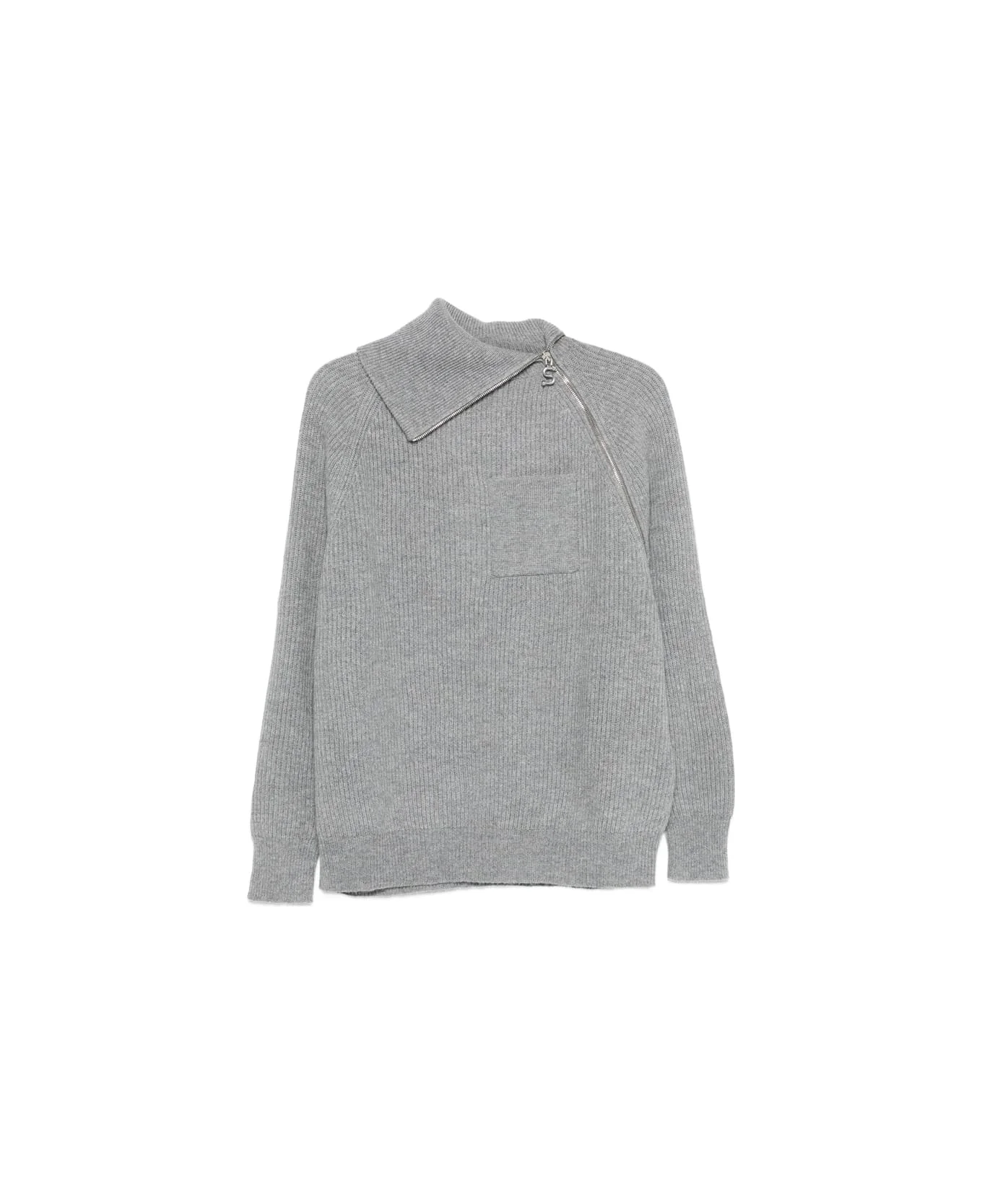 grey asymmetrical neck zip fastening patch pocket ribbed knit long sleeves Made in: Bangladesh Color: GREY Model number: SALPA103