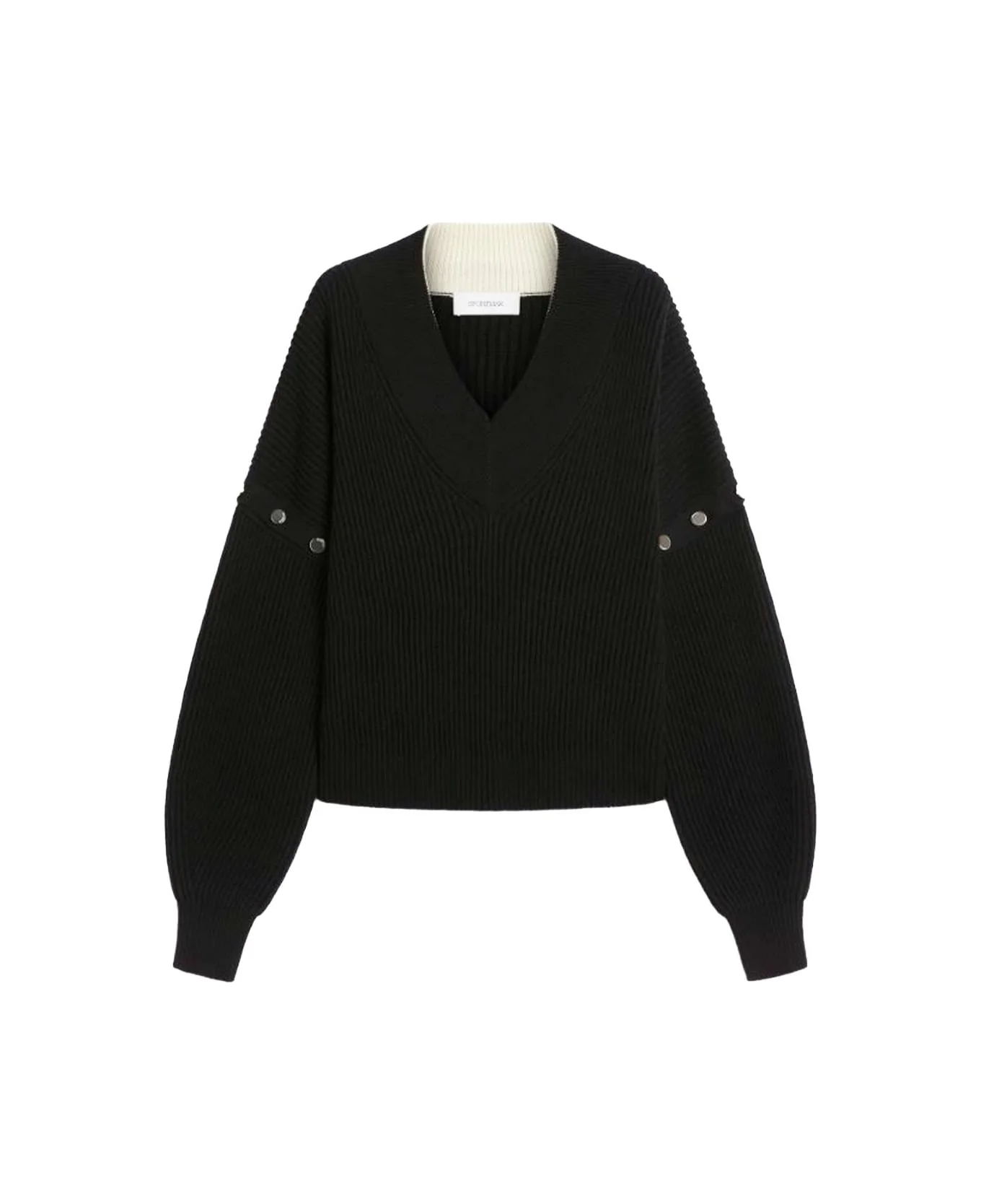 black wool v-neck ribbed knit Composition: 100% Wool Made in: Romania Color: Black Model number: 22366192600008